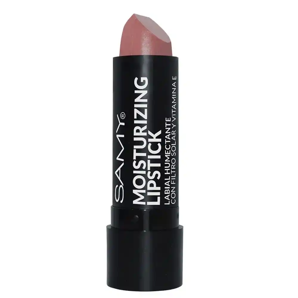 Labial suave y cremoso en colores intensos que deja una película de brillo y humectación en los labios gracias a su fórmula con vitamina E y filtro solar
