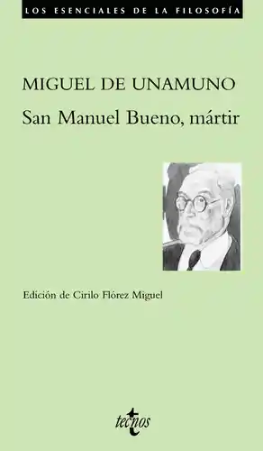 SAN MANUEL BUENO MARTIR. Obra maestra de Miguel de Unamuno, que éste escribiera a la vuelta del exilio. Puede considerarse como una síntesis de su pensamiento. Es una obra simbólica en la que todo lo que se nombra y describe: el pueblo, el lago, la montaña, la nieve hace referencia a una realidad que tenemos que considerar como estando más allá de lo que aparece. Unamuno la denomina tragicomedia y es, en definitiva, el relato de la vida de Don Manuel, un cura de aldea entregado plenamente a su pueblo. Es unanovela en la que Unamuno alcanza su madurez como escritor y logra exponer, narrativamente, sus ideas filosóficas. En ella se hace presente el sentimiento trágico de la existencia (característico de la filosofía de Unamuno) y un sentimiento de serenidad, que se trasluce en la vida de don Manuel y su dedicación a su pueblo; muestra este segundo sentimiento de un saberse finito y de vivir el tiempo de la historia como el tiempo propiamente humano. Para Don Manuel la historia no es un lugar de paso, sino la morada del hombre; y lo que éste tiene que hacer es saber «habitar» esa morada.