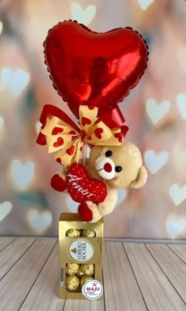 san Valentín peluche y chocolates ferrero por 8 unidads