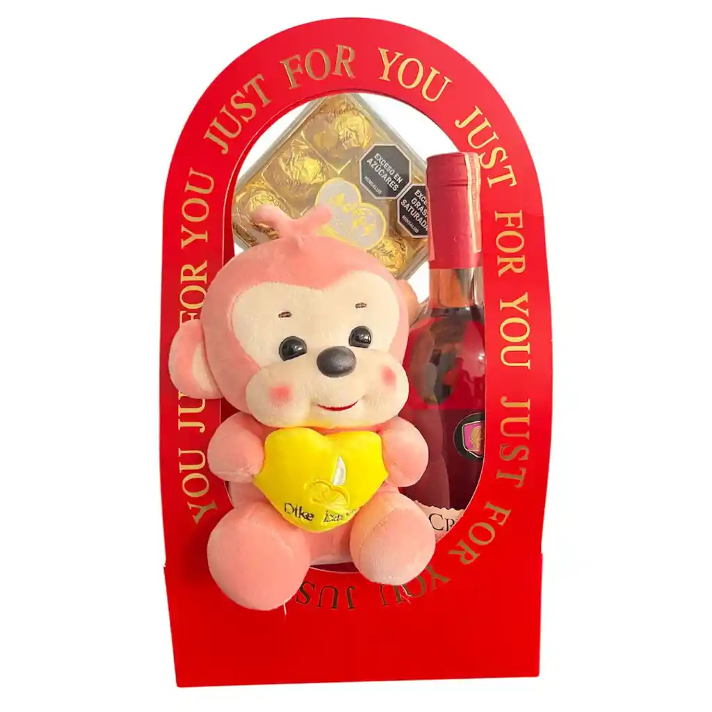 San Valentin Regalo especial ancheta de amor con peluche, vino y chocolates - combo 21