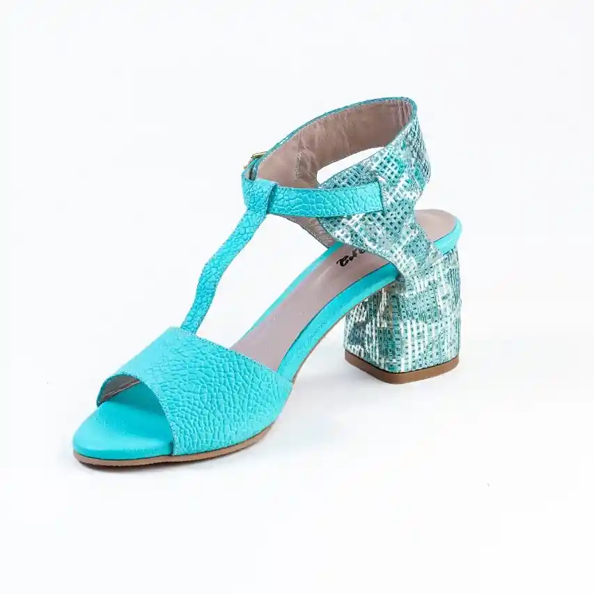 Sandalia Aguamarina con delicados toques en dorado en la zona del tacon