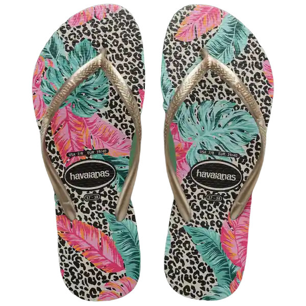 Con un Par. ¡Las Havaianas Slim Animal Floral Son Una Fiesta Para Tus Ojos! El Exuberante Estampado Combina a la Perfección Con la Forma Slim. Las Tiras Metalizadas le Dan un Toque Aún Más Moderno.