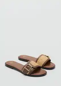 Par. Diseño Destalonado Flat Hebilla Decorativa Punta Redonda Sin Cierre Tejido de Rafia Tejido Mezcla de Piel - 87027167_Cu.