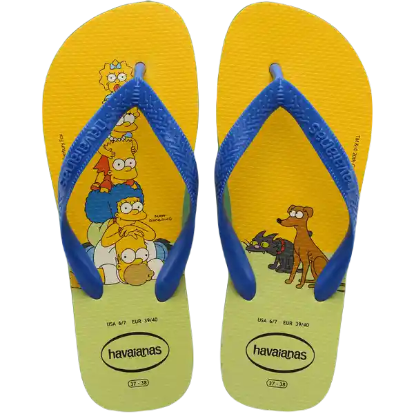 Par. La Familia Más Divertida de Las Caricaturas Los Simpson Estampan Estos Modelos de Havaianas Con Marge Homero Bart Lisa Maggie y Sus Mascotas y Traen la Irreverencia a Tus Sandalias.