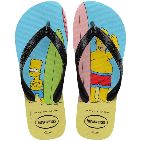 Par. La Familia Más Divertida de Las Caricaturas Los Simpson Estampan Estos Modelos de Havaianas Con Marge Homero Bart Lisa Maggie y Sus Mascotas y Traen la Irreverencia a Tus Sandalias.