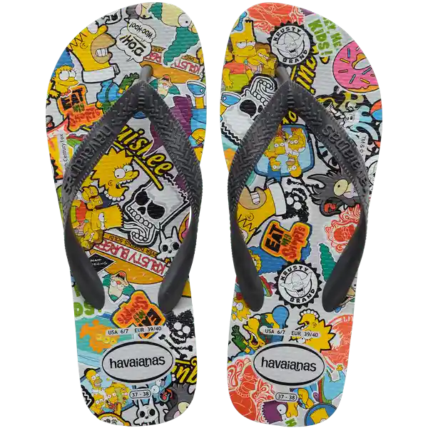 Par. La Familia Más Divertida de Las Caricaturas Los Simpson Estampan Estos Modelos de Havaianas Con Marge Homero Bart Lisa Maggie y Sus Mascotas y Traen la Irreverencia a Tus Sandalias.