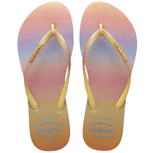 Con un Par. Las Havaianas Slim Gradient Sunset se Inspiran en Los Colores Del Atardecer. El Acabado Metalizado Del Estampado en Toda la Suela - Incluso en Los Costados - Y en Las Tiras Hace Que Sean Todavía Más Bonitas y Modernas.