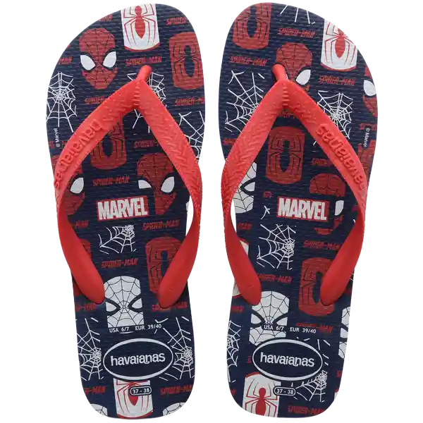 Par. Los Superhéroes de Marvel Como Iron Man Spiderman y Capitán América Tienen Trajes y Características Inconfundibles. Estas Icónicas Representaciones se Destacan en Las Havaianas Top Marvel Logomania. La Unión Perfecta Entre Estilo y Comodidad.