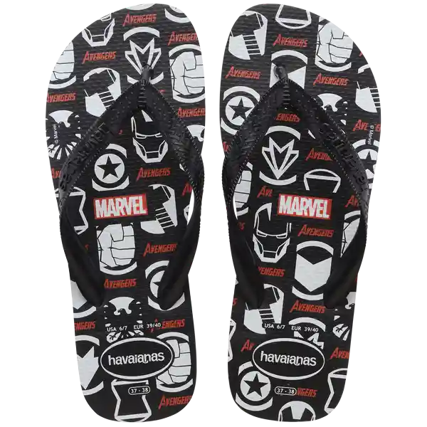 Par. Los Superhéroes de Marvel Como Iron Man Spiderman y Capitán América Tienen Trajes y Características Inconfundibles. Estas Icónicas Representaciones se Destacan en Las Havaianas Top Marvel Logomania. La Unión Perfecta Entre Estilo y Comodidad.