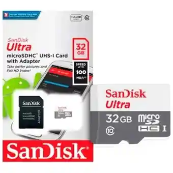 Memoria Sandisk Micro Sd 32gb 80mb/s Original Clase 10 Memoria Sandisk ORIGINAL, sellada en su empaque, no manejamos genéricas, compatible con drones, camaras ip, celulares, etc. Esta tarjeta de memoria incluye la clasificación de video de clase 10 para grabación de video de alta calidad, de modo que puedas capturar Full HD2 sin exclusiones ni sobresaltos. Y con hasta 32 GB3 de espacio de almacenamiento, las tarjetas te permiten guardar una gran cantidad de archivos de video full HD antes de tener que transferirlos a tu computadora. REALIZA COPIAS DE SEGURIDAD DE TUS MEDIOS FAVORITOS FÁCILMENTE CON LA APLICACIÓN SANDISK MEMORY ZONE La aplicación SanDisk Memory Zone, disponible en la tienda de Google Play, facilita la visualización, el acceso y la realización de copias de seguridad de los archivos de la memoria de tu teléfono en un lugar conveniente. Puedes configurar la aplicación para que descargue de forma automática los archivos de la memoria interna de tu dispositivo a una tarjeta de memoria3 DISEÑO DURADERO Las tarjetas SanDisk Ultra microSD UHS-I son resistentes al agua, a prueba de golpes, a prueba de rayos x y resistentes a la temperatura5 para proteger tus recuerdos de los contratiempos de la vida cotidiana. Lleva tu teléfono o tableta a la nieve, a la piscina o al desierto. Incluso si tu dispositivo no perdura, la tarjeta de memoria sí lo hará. AGREGA ALMACENAMIENTO A LAS TABLETAS Y A LOS TELÉFONOS INTELIGENTES ANDROID Las tarjetas SanDisk Ultra microSD UHS-I son un compañero ideal para los teléfonos inteligentes y las tabletas Android de alto rendimiento. El almacenamiento adicional de las tarjetas te permiten tomar más fotos y videos sin tener que preocuparte por la falta de espacio. CARACTERÍSTICAS: -Velocidad de lectura: hasta 80 MB/s -Factor de forma: microSDHC -Compatibilidad Compatible con los dispositivos host que admiten microSDHC y microSDXC -Dimensiones de la tarjeta 0.59 pulg. x 0.043 pulg. x 0.04 pulg. (14,99 mm x 10,92 mm x 1,02 mm) -CLASIFICACIÓN DE VELOCIDAD DE CLASE 10 PARA CAPTURAS DE VIDEO FULL HD. CONTENIDO: -1 Memoria Sandisk Micro Sd 32gb 80mb/s Original Clase 10
