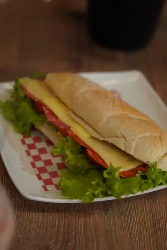 sanduche baguette con pan masa madre, tenemos de pollo y salami