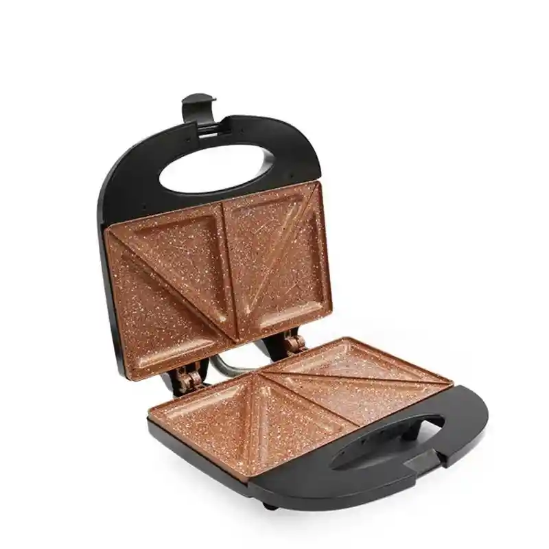 Sanduchera Home Elements Tipo Piedra Recubrimiento En Cobre 117NC Sanduchera eléctrica Cobre, dos puestos con sistema de cierre con seguro. No te enredes, diseño y tamaño ideal para guardarla en cualquier espacio de tu cocina, además cuenta con porta cable que facilita su uso. La línea Cobre de Home Elementes presenta la Sanduchera Eléctrica con recubrimiento cobre, superficie con doble antiadherente, alarga la vida útil de la Sanduchera, dos puestos con sistema de cierre con seguro. La Sanduchera eléctrica cuenta con luces led que indican el estado de preparación, luz verde, listo para disfrutar. Su interior tiene dos puestos con placas antiadherentes que evitan que se peguen los alimentos. Despreocúpate, no más alimentos quemados, la Sanduchera eléctrica tiene un sistema regulador de temperatura. Combina los ingredientes a tu manera, para un sanduche perfecto, para disfrutar en cualquier momento y en cualquier lugar. · Tipo piedra + recubrimiento cobre · Superficie con doble antiadherente, alarga la vida útil de la Sanduchera. · Sus luces led te indican el estado perfecto de preparación de tus sanduches. · ¡Despreocúpate! no más alimentos quemados cuentan con un sistema regulador de temperatura. · No te enredes, su diseño y tamaño es perfecto para guardar en cualquier espacio de tu cocina. · Cuenta con porta cable que facilita su almacenamiento