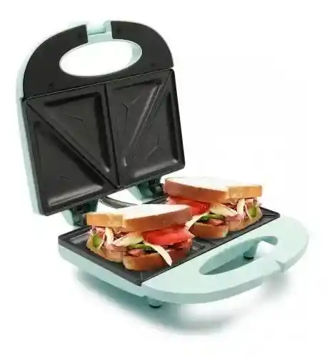 Sanduchera Eléctrica Mint – Home Elements -Sanduchera eléctrica Mint, dos puestos con sistema de cierre con seguro. No te enredes, diseño y tamaño ideal para guardarla en cualquier espacio de tu cocina, además cuenta con portacable que facilita su uso. -La sanduchera eléctrica cuenta con luces que indican el estado de preparación, luz verde, listo para disfrutar. Su interior tiene dos puestos con placas antiadherentes que evitan que se peguen los alimentos. Despreocúpate, no más alimentos quemados, la sanduchera eléctrica tiene un sistema regulador de temperatura. -Peso: 0.3 kg -Dimensiones: 24.5 × 9 × 23.5 cm