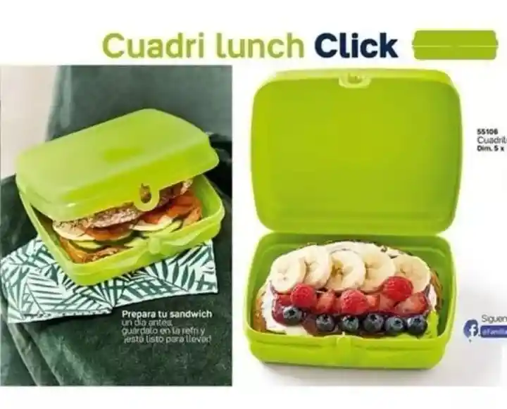 Para llevar tus alimentos del día, disfruta tus comidas preferidas con la sanduchera Clic un recipiente ideal para llevar sandwich, pasteles, cabe la caja de leche saborizada, por su diseño es un detalle para obsequiar en cualquier ocasión, cuenta con broche abre fácil, úsala para organizar y llevar tus audífonos, tapabocas, medicamentos, o como multicositas Medidas: 14.5 x 13.5 x 5.2 cm de alto. Producto plástico libre de BPA.