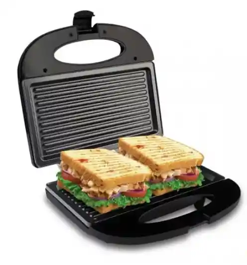 SANDUCHERA HOME ELEMENTS GRILL ASADOR Sanduchera Grill – Home Elements Sanduchera grill asador, cuenta con un sistema de cierre con seguro. No te enredes, diseño y tamaño ideal para guardarla en cualquier espacio de tu cocina, además cuenta con portacable que facilita su uso. La sanduchera grill cuenta con luces que indican el estado de preparación, luz verde, listo para disfrutar. Su interior tiene placas antiadherentes que evitan que se peguen los alimentos. Despreocúpate, no más alimentos quemados, la sanduchera eléctrica tiene un sistema regulador de temperatura. Realiza diversas preparaciones, prepara sanduches, pinchos, pollo, pescado y mucho más.