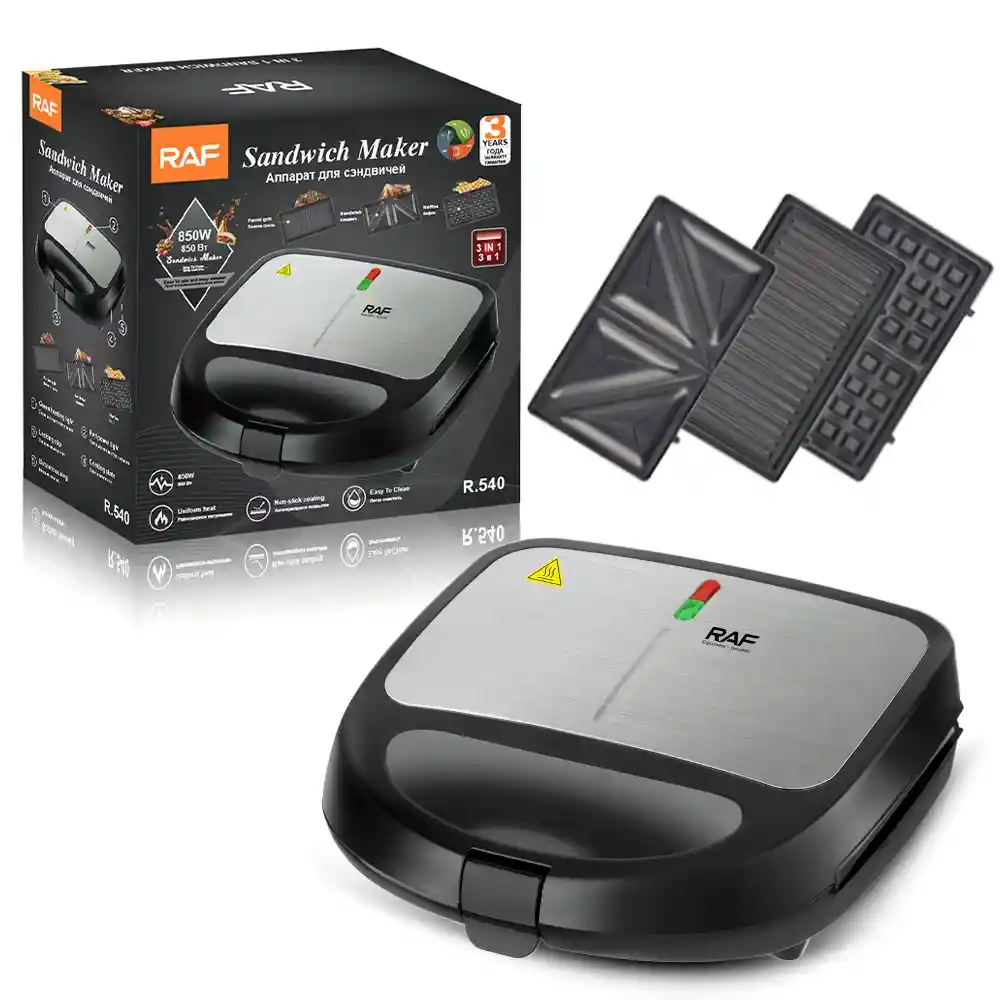 (1) Con 3 tipos de platos, La sandwichera es perfecta para hacer sándwiches, gofres, barbacoas, filetes, etc. (2) Alimentado por 220V y 800W, la máquina para hacer gofres alcanza la temperatura de cocción rápidamente (unos 5 minutos), las placas de cocción dobles se calientan uniformemente y Son crujientes por fuera y tiernas por dentro. (3) Las luces indicadoras de encendido y precalentamiento le permiten saber que la placa ya está lista para cocinar o está encendida. (4) Placas de cocina antiadherentes, extraíbles y de fácil limpieza. Apto para lavavajillas y fácil de almacenar.
