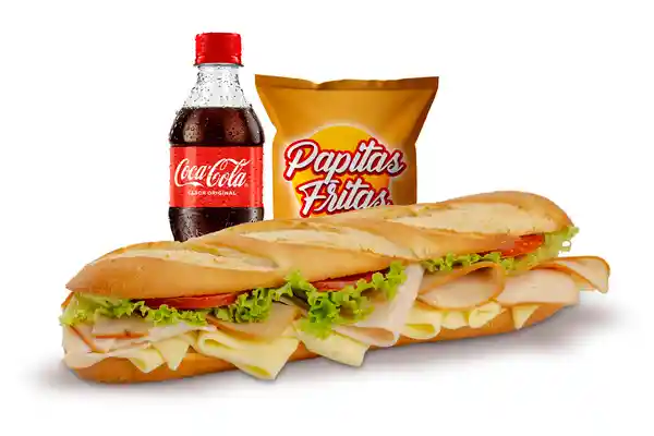 Contiene 3 Unidades. Sándwich Cerdo Selecc 1 Und + Coca-Cola Gaseosa 1 Und + Papas Pollo 1 Und.