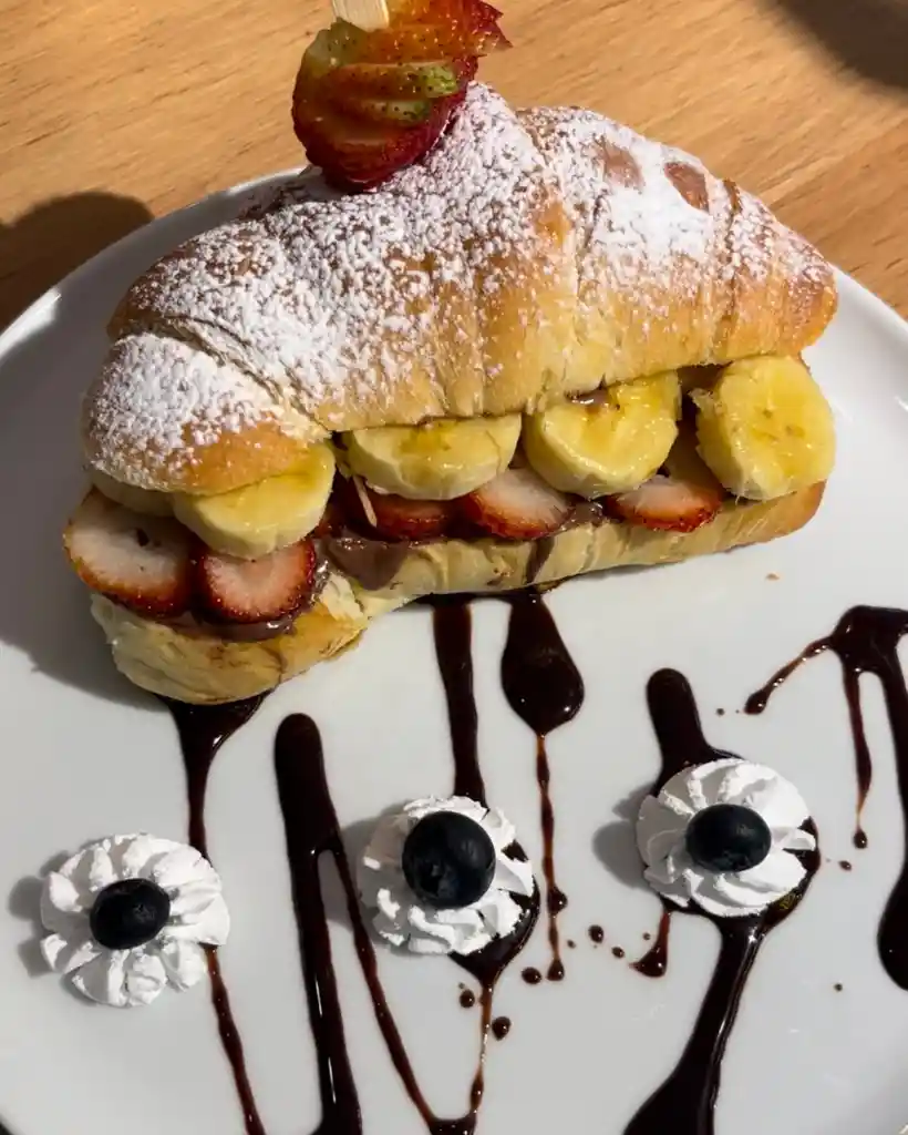 Sándwich en CROISSANT relleno de FRESAS, BANANO, NUTELLA y Helado, perfecto para endulzar tus momentos favoritos