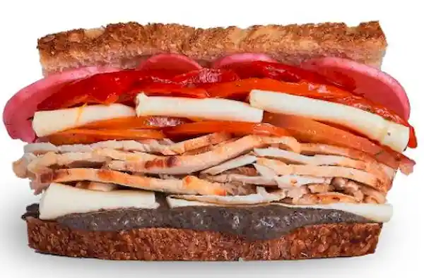 Saludable Con Pan Masa Madre Pavo Paté de Hongos Pimentones Rojos Tomate Rábano y Queso Mozzarella. Sin Packaging