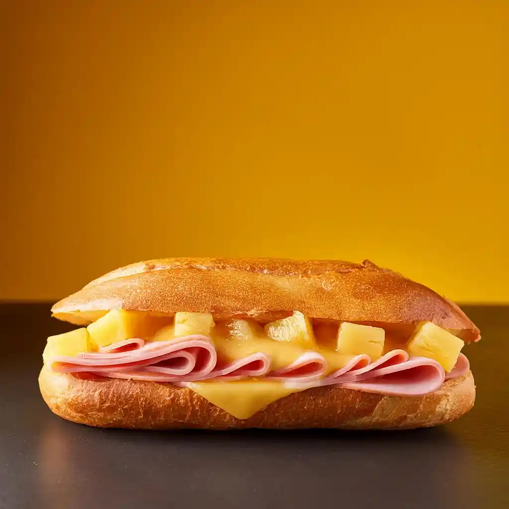 El trio dinámico en un solo lugar queso, jamón, piña.