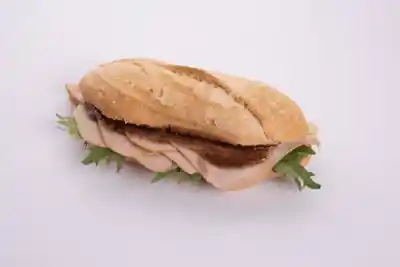 Jamón de cerdo, pan gourmet gran reserva, rúgula y salsa de ciruelas.
