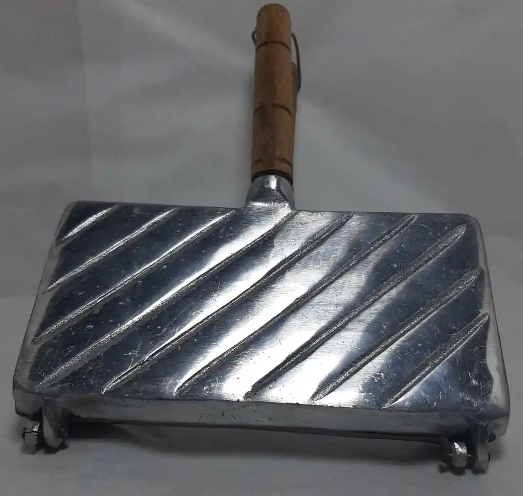 Sandwichera en aluminio fundido brillado, 2 puestos, mango de madera Alto: 4 cm Largo: 28 cm Ancho: 22 cm