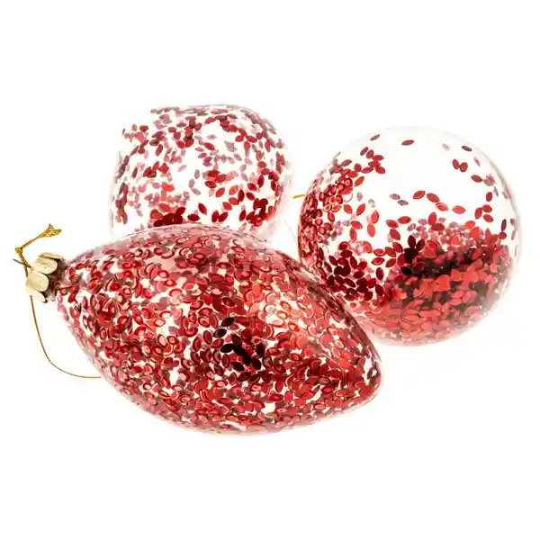 Set Por 3 Piezas. 17 Cm. Material: Vidrio. Estilo: Navideño. Detalle: Rellenos de Escarcha Grande Ovalada Roja. Gancho y Cordón Dorado. Ideal Para Colgar en el Árbol de Navidad. Sku 163680
