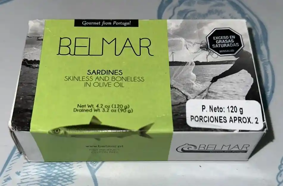 Sardinas en aceite de oliva sin espinas, empacadas en latas por 120 gramos.