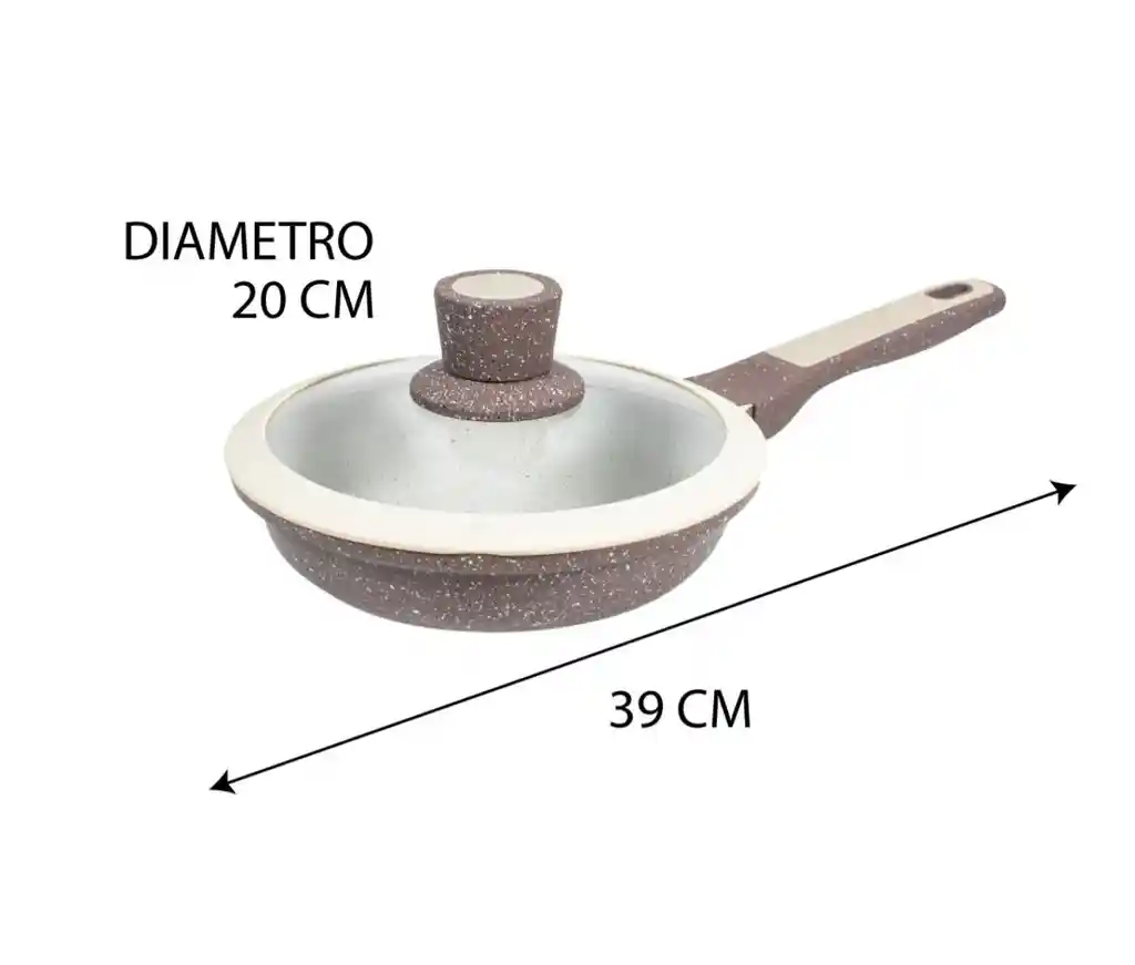 CUIDA TU SALUD Y DISFRUTA DE LA COMODIDAD DE COCINA SIN QUE LOS ALIMENTOS SE PEGUEN EN TU SARTÉN. Con nuestro Sartén Antiadherente en Mármol con tapa en Silicón 20cm es posible disfrutar de tus alimentos favoritos cocinados de manera saludable y sin que se peguen a la sartén. El Sartén en Mármol le brindará un toque de elegancia a su cocina además de practicidad y usabilidad. 1 Sartén 20 Cms + Tapa en Vidrio. Cocina sin grasas ni aceites dañinos para la salud. Mejora la alimentación diaria. Cocina, asa, fríe y rostiza de una manera saludable. Mangos ergonómicos para un mejor agarre y resistencia. Este Sartén en Mármol es más resistente a los rayones y es 10 veces más duradero que los Sartenes antiadherentes tradicionales.