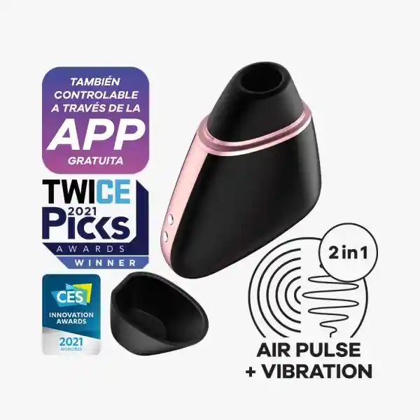 Succionador de Clítoris Satisfyer Love Triangle con App Satisfyer sigue evolucionando en sus dispositivos de placer femenino con un toque tecnológico que incrementa su potencial para disfrutar de la sexualidad de una forma diferente. Para esta ocasión presentamos el Succionador de Clítoris Satisfyer Love Triangle, un juguete vibrador que cuenta con una interesante alternativa de placer con control remoto: su App Satisfyer Connect. Disponible en iOS y Android, esta App intuitiva y en constante renovación permite crear, personalizar y compartir las características de los planes de masajes íntimos, activar el Succionador de Clítoris Satisfyer Love Triangle de forma remota, disfrutar del control táctil, transmisión en vivo… y experimentar vibraciones al ritmo de las canciones favoritas. El Succionador de Clítoris Satisfyer Love Triangle tiene un diseño sofisticado, elegante y discreto. Cuenta con una práctica tapa que permite un práctico e higiénico almacenamiento para transportarlo a cualquier lugar. Cuenta con dos potentes motores que controlan sus diferentes niveles de ondas de presión y programas de vibración; además, es resistente al agua para que los juegos en la ducha o bañera sean totalmente cómodos y permitan vivir experiencias realmente mojadas. Su cabezal está elaborado en silicona médica hipoalergénica, de textura suave, lisa y segura para el cuerpo. La tecnología Air Pulse permite que el Succionador de Clítoris Satisfyer Love Triangle estimule el clítoris sin contacto directo, brindando la libertad de elegir dónde y cómo experimentar el placer de esta pequeña y fascinante joya. Características del Satisfyer Love Triangle Masaje multifunción: diferentes modos de succión personalizables 10 configuraciones de vibración 11 intensidades de ondas de presión Control remoto por App. También se puede utilizar sin la App Color: Negro – Blanco Material: Silicona grado médico + ABS Medidas Largo: 8,7 cm Ancho: 6,7 cm Alto: 3,1 cm Peso: 115,5 g Batería recargable por medio de cable USB con Pin Magnético (Adaptador de corriente no incluido) Resistente al agua. (Clasificación IPX7: protege hasta 1 metro de profundidad) Compatible con la App Satisfyer Connect disponible en iOS y Android 6 meses de garantía