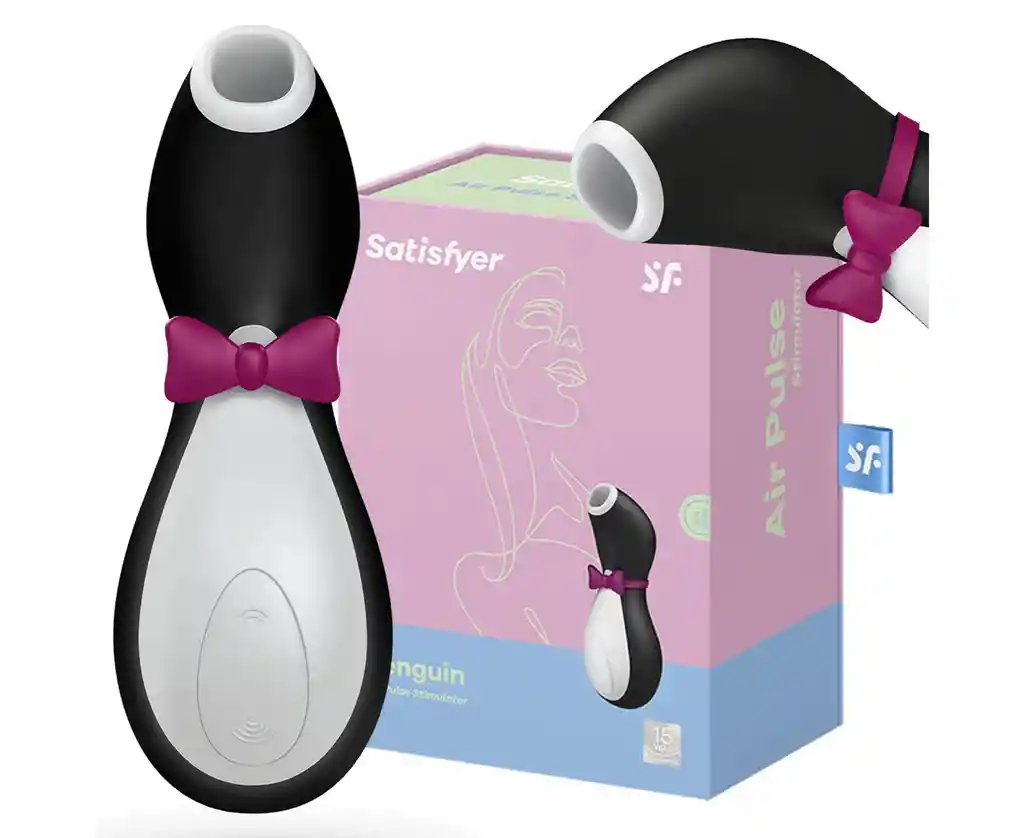 Su forma esbelta se siente cómodamente en su mano gracias a sus contornos ergonómicos. El diseño práctico y los controles son fáciles de hacer para principiantes en el juego individual. Gracias a su excelente aislamiento, el Satisfyer Pro Penguin es mucho más silencioso que los productos comparables en el mercado. La parte superior suave, fabricada con silicona que no daña la piel, es 100% higiénica y protege el interior del agua, el lubricante u otros líquidos. Funciones - Manejo: Mantener pulsado el botón de mando durante 2 segundos para encender el juguete. Satisfyer Pro Penguin está activado en el nivel de masaje más bajo. Separa ligeramente los labios vaginales para exponer el clítoris. Coloca el cabezal del juguete sobre el clítoris, de manera que quede dentro de la cavidad.
