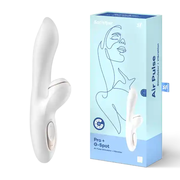 Sensaciones únicas gracias a la estimulación del clítoris y el masaje del punto G.Características:ImpermeableSilicona amigable con la piel3 intensidades y 7 ritmos de vibración11 modos de ondas de presiónConfiguración de vibración individualEstimulación doble (ondas de presión y vibración)Estimulación del clítoris. punto G. penetración vaginalRecargable. incluye cable de carga magnético USBEsta es nuestra revolución: hacer que los orgasmos para las mujeres sean un estándar.Sabemos que muchas mujeres del mundo tienen problemas para experimentar el orgasmo. La tecnología Air Pulse permite estimular el clítoris sin ningún contacto directo.Estimula tu clítoris sin contacto a través de ondas de presión. proporcionando una estimulación más profunda que lleva a orgasmos múltiples.Esto le da una sensación similar a la de la estimulación oral: el cambio rápido entre succión y presión está disponible en 11 intensidades: simplemente use los controles intuitivos para alternar entre ajustes. Un tercer botón controla la configuración de vibración. lo que permite innumerables combinaciones de configuraciones seductoras. El Satisfyer Pro G-Spot también es extremadamente silencioso. ¡aunque puede sacarle algunos ruidos! El acabado resistente al agua significa que es también el compañero ideal para bañarse y te invita a disfrutar de placeres sensuales en la ducha o en el baño.La forma ergonómica y la cubierta de silicona suave como la seda del Pro G-Spot garantizan que se s