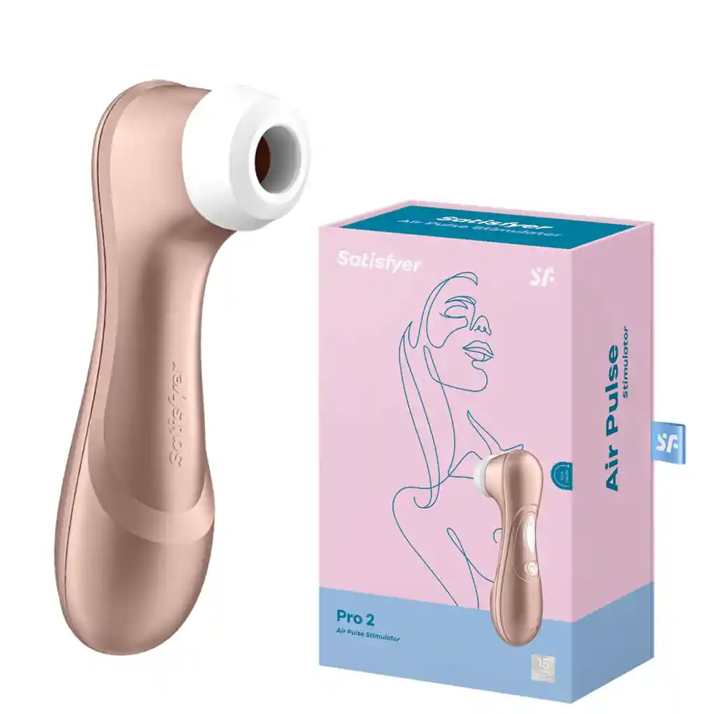 Nuestro clásico y elegante Pro 2 estrena nuestra tecnología patentada Air-Pulse, pensada para excitar tu clítoris hasta alcanzar un auténtico éxtasis. Con un motor silencioso y un cabezal de silicona suave, el Pro 2 proporciona el estado de ánimo para alcanzar el punto álgido de tu deseo. SAT_Feature-Icons_32-5mm-08 Estimula el clítoris utilizando intensas ondas de presión sin contacto directo SAT_Feature-Icons_32-5mm-19 Fabricado con silicona de grado médico supersuave, agradable para la piel, suave al tacto y extremadamente higiénica SAT_Feature-Icons_32-5mm-11 Gracias a su acabado impermeable (IPX7), este juguete se puede usar de forma segura en el agua, además de ser fácil de limpiar 11 intensidades de onda de presión Modo de susurro Estanco IPX7 Bajo el agua Fácil de limpiarz Batería de iones de litio Garantía de 1 año Cable de carga magnético por USB Satisfyer Pro 2: Vibrador de onda de presión con orgasmos garantizados El Satisfyer Pro 2 cuenta con nuestra innovadora tecnología Air Pulse de Satisfyer, que acaricia tu clítoris por medio de suaves e intensas ondas de presión. Gracias a sus excitantes pulsaciones, se ha vendido ya millones de veces. Con este bestseller experimentarás unos orgasmos explosivos y nunca te cansarás de este precioso producto de bienestar sexual. Nunca antes había sido tan fácil mantener en equilibrio tu bienestar sexual. ¿Cuáles son las ventajas del Satisfyer Pro 2? Además de los aspectos destacados nunca antes vistos, Satisfyer Pro 2 de nueva generación ofrece un diseño optimizado del botón que te permite recorrer los 11 excitantes niveles de la onda de presión. Este dispositivo de bienestar sexual también es impermeable y se puede utilizar discretamente en la bañera o bajo las sábanas gracias a su motor silencioso y discreto. Un cómodo cargador USB permite cargar fácilmente la batería y poner a punto el Satisfyer Pro 2 para las siguientes y emocionantes horas de diversión para ti. Para disfrutar de una experiencia aún más impresionante, puede usar un lubricante con base de agua: los lubricantes de Satisfyer están especialmente formulados para este producto de bienestar sexual y aportan un plus de placer. El cabezal de aplicación de silicona suave es más grande y más ancho, de modo que envuelve tu clítoris aún mejor y te proporciona unas experiencias únicas. Además, se puede limpiar fácilmente con agua y jabón o con un limpiador de juguetes estéril. Estamos tan convencidos de la calidad de nuestros productos que te ofrecemos una garantía de 15 años. ¿Qué otra cosa te impide lanzarte a por este juguete de bienestar sexual increíblemente excitante? Este producto, debido a la cámara Air-Pulse, podría no ser apropiado para aquellos clítoris que se agrandan debido a tratamientos hormonales; nuestros dispositivos multifunción de bienestar sexual y vibradores de dedo ofrecen la más variada gama de casos de uso y podrían resultar interesantes para ti.