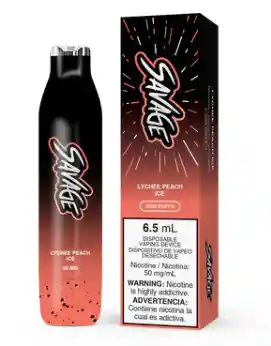 Vapeador SAVAGE de 2000 puffs al 50%mg, sabor liche y melocoton mentolado Prohibida la venta a menores de edad. Producto nocivo para la salud que contiene nicotina, sustancia altamente adictiva. Antes de consumir consulte las indicaciones y contraindicaciones de uso