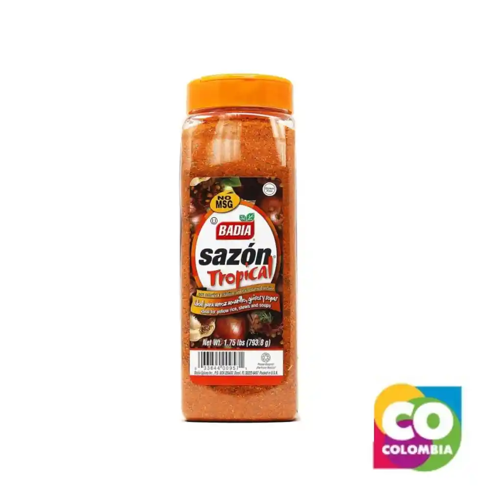 El sazón tropical Badia es un condimento en polvo utilizado para sazonar y dar sabor a una variedad de platos. Viene en un formato de 6 paquetes individuales de 793.8 gramos en total. Este tipo de sazón suele estar compuesto por una mezcla de especias y hierbas aromáticas típicas de la cocina tropical, diseñado para realzar el sabor de comidas como arroces, guisos, carnes y aves. Las especificaciones del producto incluyen generalmente una combinación balanceada de ingredientes como ajo, cebolla, pimiento, cilantro, comino, y posiblemente otros condimentos que pueden variar según la marca y la región para la que está destinado. Es ideal para aquellos que buscan añadir un toque característico y sabroso a sus platos inspirados en la cocina tropical, proporcionando conveniencia al estar en presentación de paquetes individuales que aseguran la frescura y facilidad de uso.