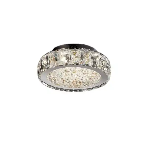 Plafón Español de Iluminación Led Realizado en Metal, Acero Inoxidable y Piezas de Cristal Facetado. Interior Con Octógonos de Cristal Transparente y Ámbar. Luz Led Blanca. Ø23,0 ↨ 8,0 cm