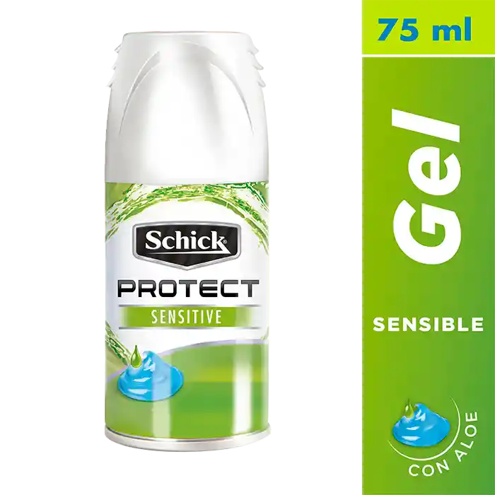 El gel para afeitar Schick Protect para piel sensible facilita el deslizamiento de la máquina de afeitar y protege tu piel. Especial para piel sensible. Fórmula enriquecida con aloe. Reduce irritación en zonas sensible