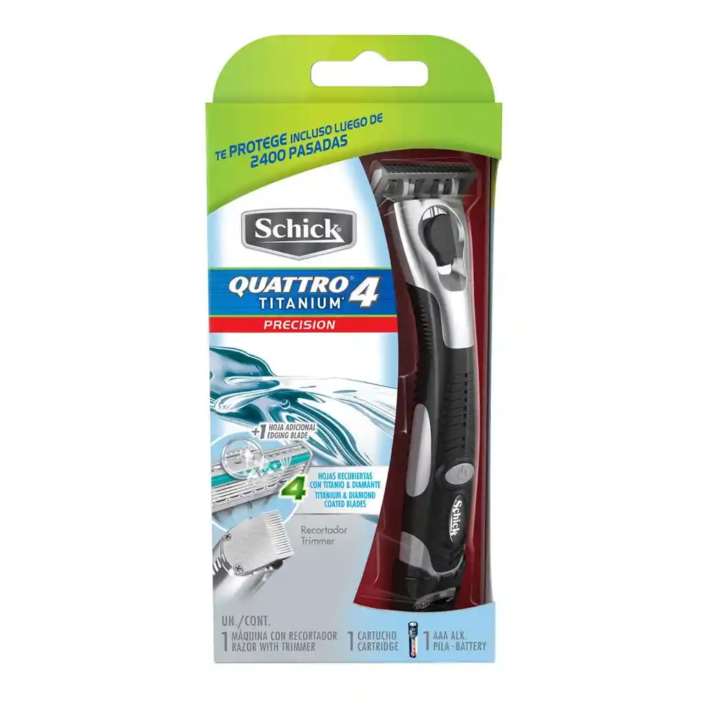 Es la máquina ideal para una rasurada uniforme y sin cortes, tiene cuatro hojas recubiertas en titanio y polvillo de diamante, una hoja adicional de extra-precisión, hilos micro protectores para evitar cortadas y una banda lubricante.