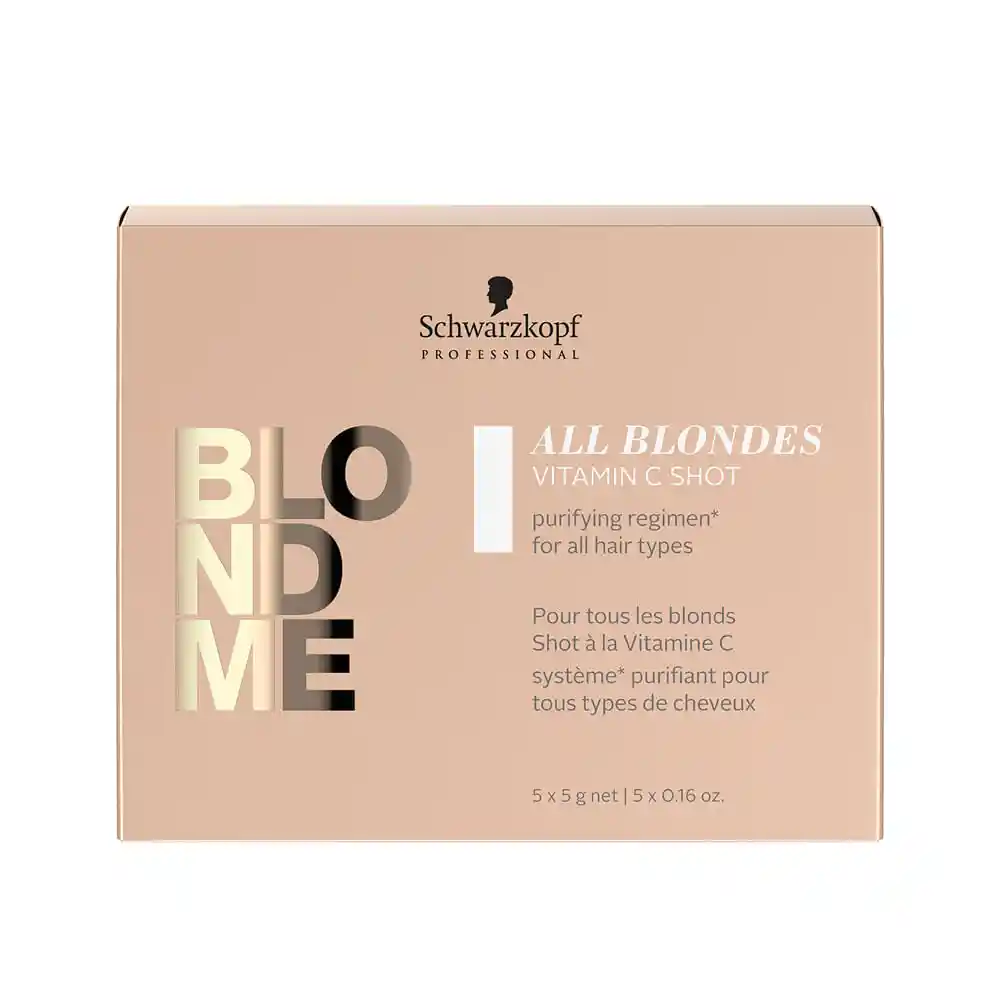 Schwarzkopf Blondme All Blondes Vitamin C Shot Tiene una fuerte acción desintoxicante. Este trago debe mezclarse con la mascarilla desintoxicante BLONDME All Blondes Détox de Schwarzkopf. Cuando se mezcla, aumentará la eficacia de la mascarilla y proporcionará beneficios adicionales. Por un lado, ayudará a eliminar por completo los minerales del agua dura, la acumulación de productos y otros residuos del cabello. Además, elimina la acumulación de iones que crean tonos azules y verdes en el cabello rubio, principalmente en tonos más claros. Finalmente, esta acción desintoxicante, junto con el algodón nórdico y el extracto de semilla de moringa en la formulación, realmente revivirán los rubios opacos y cobrizos para dejar el cabello visiblemente más brillante. Beneficios Elimina los minerales del agua dura y los residuos del cabello Elimina la acumulación de iones que alteran el tono del cabello Deja el cabello más brillante. Modo de uso Mezcla un sobre de Schwarzkopf BLONDME All Blondes Vitamin C Shot con 25 gramos de Schwarzkopf BLONDME All Blondes Détox Mask. Aplicar sobre el cabello húmedo y dejar actuar de 10 a 20 minutos. Luego enjuague bien.