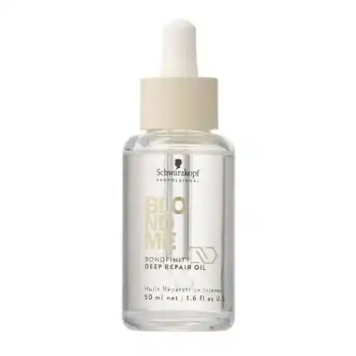 Schwarzkopf BLONDME Bondfinity Deep Repair Oil 50ml es un aceite capilar profesional especialmente diseñado para quienes tienen el cabello rubio o aclarado. Apto para todo tipo de cabellos, de finos a gruesos, está diseñado para apoyar las necesidades estructurales específicas del cabello decolorado y con mechas, que suele ser más vulnerable al debilitamiento y la rotura.