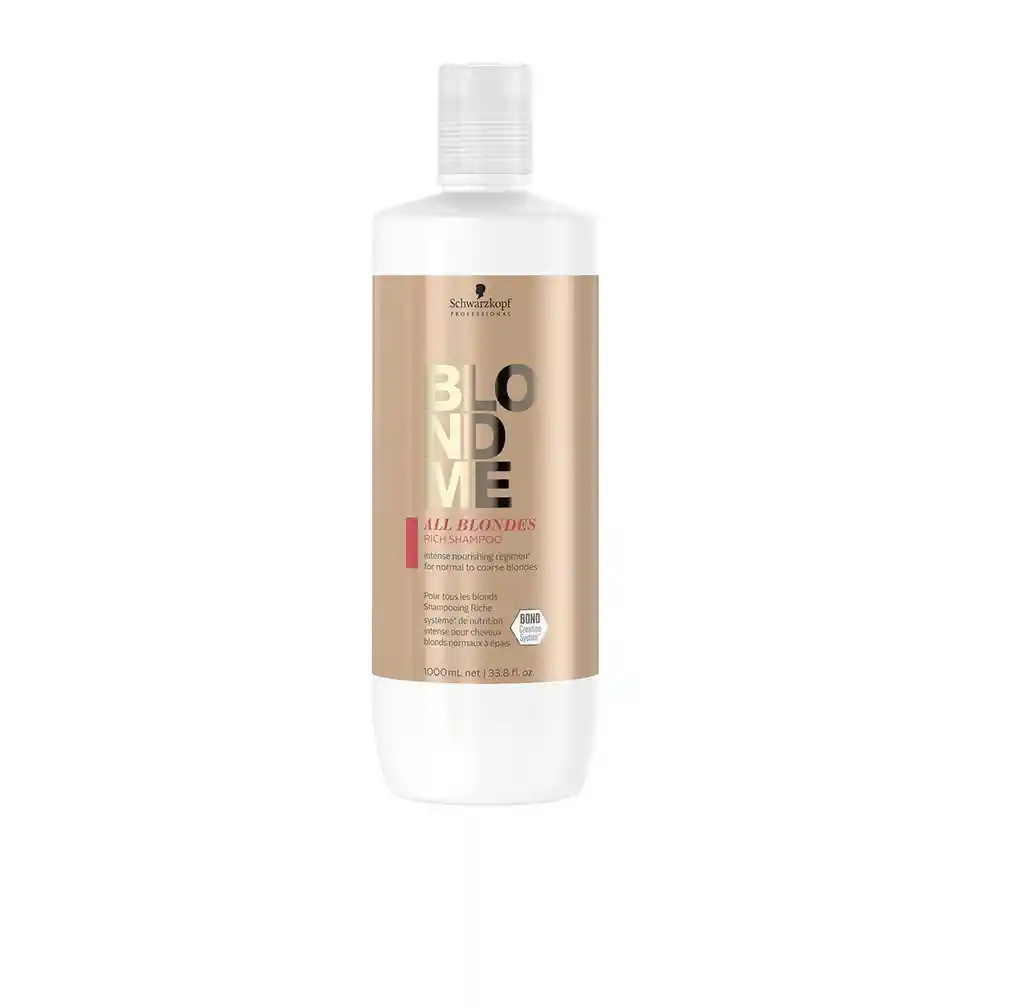 1 Shampoo All Blondes Rich Blondme 1L Cabellos Gruesos Champú sin sulfato que limpia el cabello rubio, restaura y mantiene la belleza del color rubio aún más tiempo! El riesgo de las decoloraciones es que desafortunadamente puedes dañar tu cabello. Afortunadamente, también hay productos que ayudan a tu cabello a recuperarse. Con este champú sin sulfato puedes limpiar tu cabello responsablemente, el cabello se recupera y luego puedes disfrutar de tu color de cabello rubio de manera óptima! Champú reparador sin sulfato para cabellos rubios dañados. Elimina tu cabello de manera responsable de las impurezas. Enriquecido con los ingredientes de alta calidad queratina y aceite de marula. Devuelve el contenido de humedad natural completamente equilibrado. Crea nuevos puentes en el tallo capilar, para que tu cabello vuelva a ser más fuerte. Llena las partes porosas del cabello encrespado, lo restaura y alisa hermosamente. Gracias a la superficie lisa obtenida el conjunto también obtiene un brillo multidimensional. Su cabello es notablemente suave y visiblemente sano y visiblemente más hermoso! MECHU2 PELUQUERÍAS Nuestro Cumplimiento y Calidad es Nuestra Mejor Presentación, Productos 100% Originales!! Compra Con la Seguridad que recibirás Toda La asesoría de expertos Técnicos Capilares Certificados en Cuidado, Prevención y Estética. MECHU2 PELUQUERÍAS