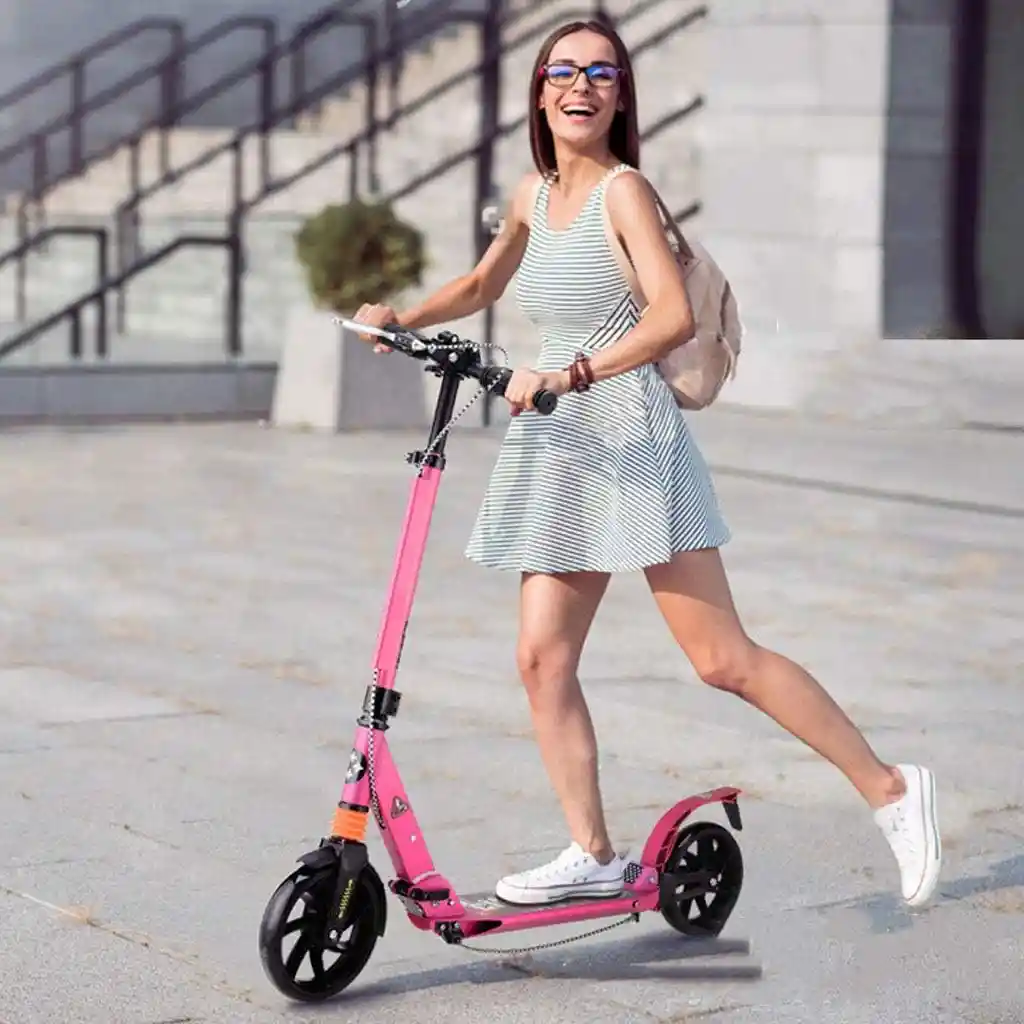 material: aleación de aluminio apoya pies ancho y antideslizante. esta increíble patineta está construida con materiales altamente resistentes, aluminio de primera calidad y plástico endurecido para larga duración. el regalo perfecto en cualquier época del año, regala una patineta para que tus hijos puedan salir a disfrutar al aire libre y no se queden en casa jugando pegados de una pantalla todo el día. ayuda a mantener el peso ideal, tonificar las piernas, quemar calorías, mejorar la resistencia física y ejercitar el equilibrio. esta espectacular patineta es ideal para ayudar al desarrollo físico de los niños de 3 años en adelante. brinda estabilidad y seguridad al niño gracias a las 4 ruedas en goma para un movimiento más rápido y silencioso en el pavimento. es el compañero ideal para el niño y el adulto , su manillar es ajustable a diferentes alturas para mayor comodidad. la patineta scooter plegable , es ideal para que puedas salir a disfrutar de un paseo con tus hijos, se van a divertir mientras pasean de una manera segura. llantas de goma al rodar edad de uso: 5 a 100 años. Freno disco en la rueda trasera. freno de pie amortiguador mono-shock atrás amortiguador adelante plegable 2 llantas, para una mayor estabilidad y que puedas maniobrar más fácil. dirección graduable con ángulo de 180 grados para que tengas un completo manejo de tu patineta apoya pies ancho y antideslizante. CARACTERÍSTICAS PRINCIPALES -llantas de goma -para personas de 145cm- 195cm -Scooter para adultos 100kilos máximo -Scooter plegable grande. -Ideal para niños de 10+ años. -Dos llantas de PU de 20 cm. -Plataforma antideslizante ancha para mayor estabilidad y resistencia. -Cuerpo de acero, manubrio con cómodos puños acolchados. -freno de disco -tiene amortiguador Mango antideslizante y cómodo, duradero y antioxidante durante mucho tiempo. Rueda de PU de 40mm, resistencia al desgaste, Más Silencio y suave al montar Diseño de absorción de impactos de la rueda delantera, puede reducir los temblores cuando se conduce en carreteras irregulares El cierre de la hebilla refuerza el mango frontal, más firme y estable Se puede ajustar la altura del Scooter, 80cm, 89cm, 96cm, 108cm, adecuado para personas de altura 130cm-180cm Marco de acero al carbono de alta resistencia y pedal de aleación de aluminio, puede cargar hasta 100KG.