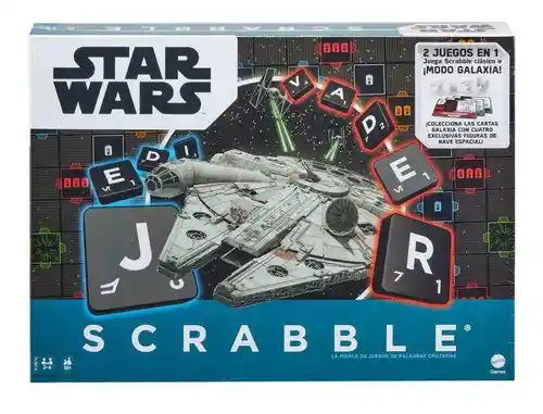 America Store te trae SCRABBLE STAR WARS Disfruta de tardes y noches de juego divertidas con tus amigos y familia con este fabuloso Juego de Mesa. Visita una galaxia muy, muy lejana… con el Juego de palabras Scrabble: Edición Star Wars. Ahora puedes lanzar tu juego Scrabble al hiperespacio con dos maneras diferentes de jugar: Disfruta del clásico Scrabble o con el vocabulario de Star Wars agregado o prueba el modo Galaxia para una experiencia de juego más envolvente. ¡Es un juego que seguramente te hará el anfitrión perfecto para un día de juegos de mesa! Recomendado para niños mayores de 10 años.