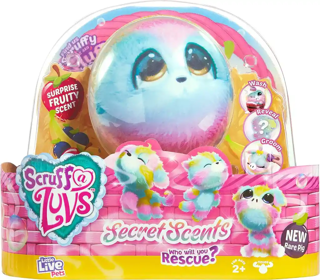 "Scruff a Luvs Aromas Secretos: ¡Descubre el misterio y la diversión con los Scruff a Luvs Aromas Secretos! Adopta, baña y descubre qué aroma esconde tu peludo amigo."