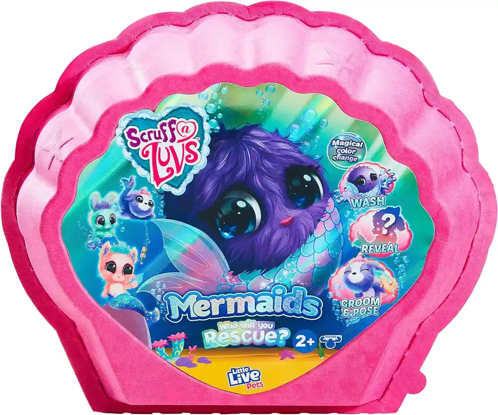 "Scruff A Luvs- Mermaids: ¡Descubre la magia del océano con los Scruff A Luvs Mermaids! Adopta, baña y cuida a tus amigas acuáticas para vivir emocionantes aventuras submarinas."