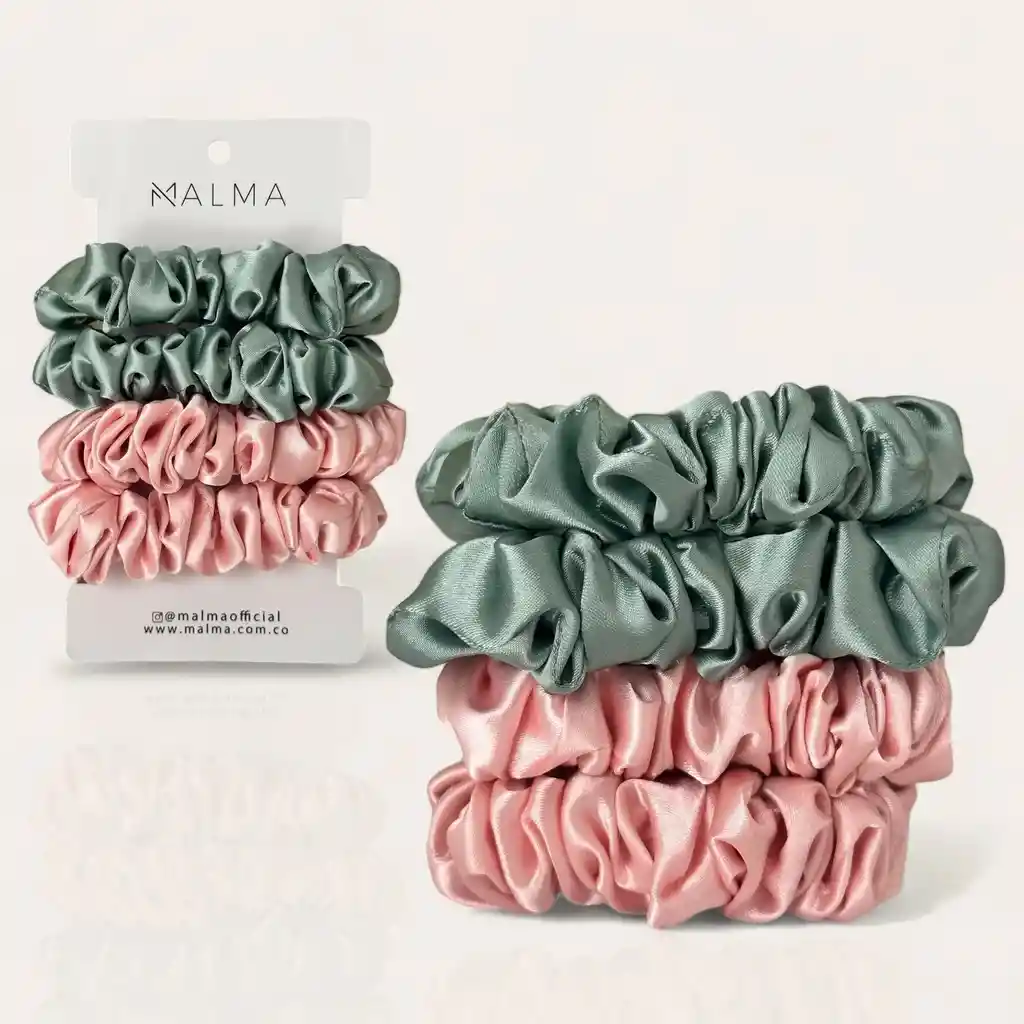 Los scrunchies de satín Malma son accesorios para el cabello fabricados con tela de satín, un material suave y lujoso. Estos scrunchies están diseñados para ser suaves con tu cabello y evitar tirones o roturas, gracias a su textura delicada. El satén también ayuda a reducir la fricción, lo que puede ayudar a prevenir el encrespamiento y el daño causado por el uso frecuente de elásticos convencionales. Los scrunchies de satin Malma vienen en una variedad de colores y estilos para adaptarse a diferentes gustos y ocasiones. Su acabado satinado le da un toque elegante y glamuroso, lo que los convierte en un accesorio versátil que puede usarse tanto para ocasiones formales como informales.