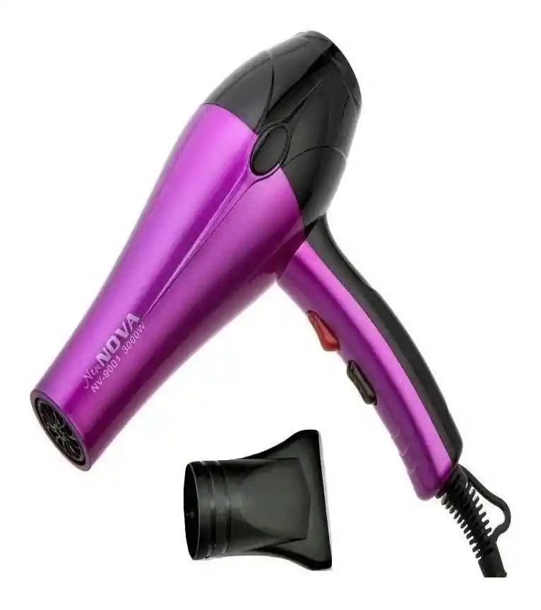 Nuevo secador NOVA 5000W• Estilo y calidad de moda con acabado metalizado- • 5000 W de potencia para un secado rápido. • Proporcionar ajuste de protección contra sobrecalentamiento: la energía se cortará automáticamente cuando esté demasiado caliente, como si se cubriera la admisión o el escape. • Interruptor de encendido / apagado con ajuste de 3 velocidades y ajuste de temperatura para un secado rápido y un peinado fácil. • Entrada grande para facilitar el flujo del viento. • Reducir la inversión ciclónica. • Potencia de entrada: AC110V-220V, 50Hz / 60Hz • Enchufe de 2 pines. Con una potencia de 3000W este secador tiene un motor ultra liviano y más silencioso a los motores convencionales que encuentras en el mercado. Con esta potencia crea un flujo de aire muy potente, el resultado de la combinación de potencia y velocidad hace que secar y peinar el cabello sea más fácil y rápido.