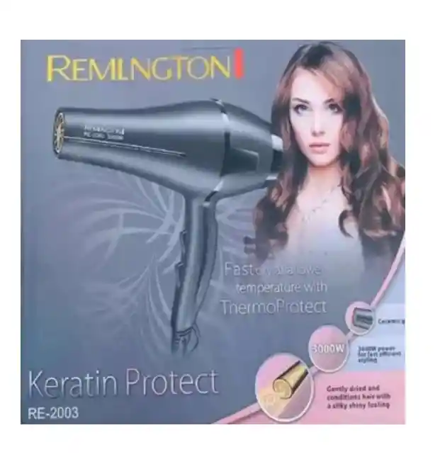 -secador cabello Remington keratin protec 3000w potencia alisado Secador keratin protec para resultados de secado suaves y respetuosos con el cabello 90 % más de iones para un cabello brillante y sin encrespamiento Características: Potencia 3000W Motor de corriente alterna (AC) de larga duración Tecnología Iónica para menor frizz y estática 2 temperaturas 2 velocidades Ráfaga real de aire frío Peso ultra ligero Concentrador de boquilla estrecha de 7 mm Rejilla trasera desmontable para una limpieza fácil Cable de 1,8 m CONTENIDO - Secador - 1 Concentrador de boquilla estrecha de 7 mm
