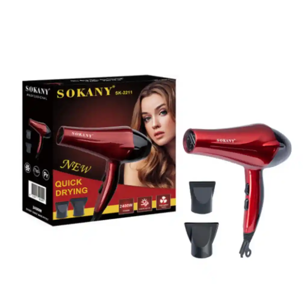 DESCRIPCION Secador de pelo de bajo ruido para salón profesional, potente cepillo personalizado de alta velocidad, recargable, soporte de un paso. Aprovecha esta oportunidad y llévatelo. Características: Tipo: Secador de pelo. Fuerza: 2400 vatios. Cuenta con 2 ajustes de temperatura. Brinda 2 configuraciones de velocidad. Color: Rojo. Modelo: SK-2211. Incluye: Secador De Pelo Sokany 3 Velocidades Y 2 Temperaturas 2400w.