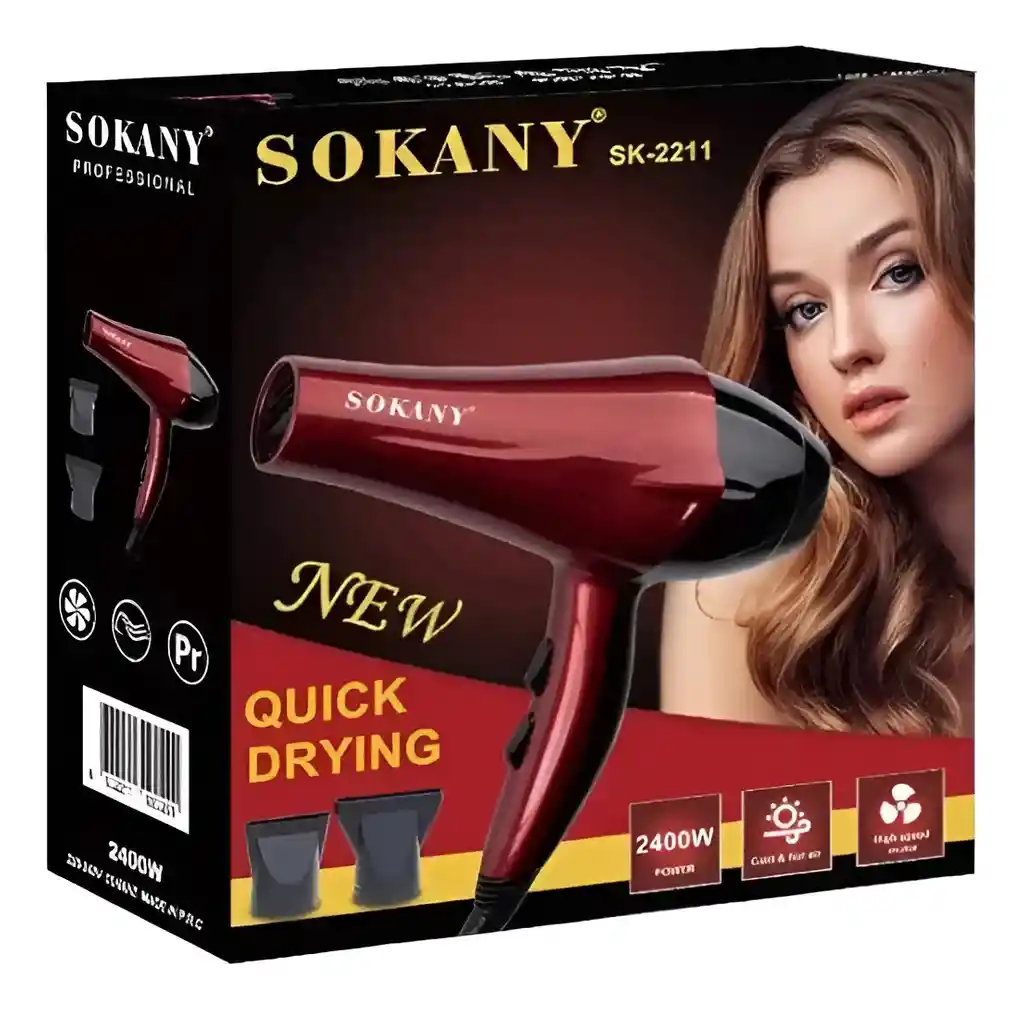 "Secador De Pelo Sokany 3 Velocidades Y 2 Temperaturas 2400w " Secador de pelo de bajo ruido para salón profesional, potente cepillo personalizado de alta velocidad, recargable, soporte de un paso. Aprovecha esta oportunidad y llévatelo. Características: Tipo: Secador de pelo. Fuerza: 2400 vatios. Cuenta con 2 ajustes de temperatura. Brinda 2 configuraciones de velocidad. Color: Rojo. Modelo: SK-2211. Si hay algo que no puede faltar en tu tocador es una secadora de cabello. En ondas, rulos, lacio, úsala como más te guste. Este producto se encargará de cuidar la salud del pelo y de crear el look perfecto para cada ocasión.
